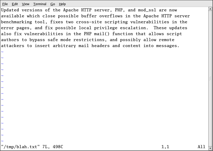 More information about using vi can be found by typing man vi at a shell prompt.