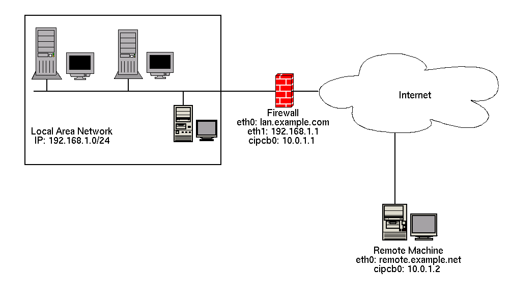 Figure 6-1. A Network and Remote Client Connected by CIPE