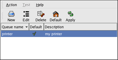 Using the Printer Configuration Tool requires root privileges. To start the application, select Applications (the main menu on the panel) => System Settings => Printing, or type the command system-config-printer. This command automatically determines whether to run the graphical or text-based version depending on whether the command is executed in the graphical desktop environment or from a text-based console.