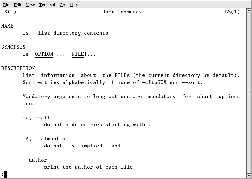 Figure 1-17. Reading a Man Page with the Shell Prompt
